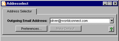 Addresselect™ Overview Addresselect™ is a RAD utility for email server users which allows selection of one of the user's pre-configured mail addresses for outbound internet mail without Administrator intervention. Requirements: What users see when using Addresselect™: Users choose from the Outgoing Email Address popup which address they